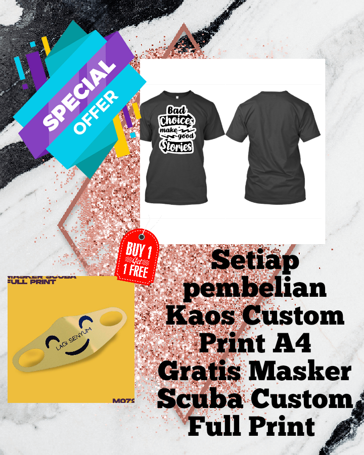 Promo Beli 1 Kaos Custum Gratis 1 Masker Scuba full Print